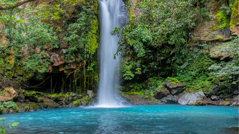 De regio rond Río Celeste voelt rustiger en ongerepter aan dan veel andere delen van Costa Rica. Gelegen tussen de Tenorio- en Miravallesvulkaan word je hier omringd door dicht regenwoud en een opvallend groen landschap. Het tempo ligt lager en de natuur staat volledig centraal.
