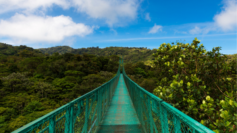 Monteverde ligt hoog in de bergen en staat bekend om zijn mysterieuze nevelwoud. Door de constante mist ontstaat hier een uniek ecosysteem met een enorme biodiversiteit. Mossen, varens, orchideeën en bromelia’s groeien weelderig op bomen en rotsen, terwijl vogels en zoogdieren zich schuilhouden in het groen.